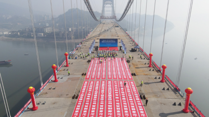 一江兩岸新跨越,砥礪奮進新征程 近日 重慶江津白沙長江大橋建成通車 長江之上再添一座跨江大橋重慶江津白沙長江大橋及連接線工程 路線全長3.16千米 其中橋梁全長1.3千米 主橋為主跨590米雙塔雙索面鋼箱梁懸索橋 主塔采用門式框架結(jié)構(gòu)東岸采用重力式錨碇,西岸采用隧道式錨碇 巨力索具承建了該項目的預應力錨固系統(tǒng) 也是整個大橋的核心受力部分 位于大橋的兩端 牢牢固定于橋梁兩端的巖石和大地之中 通過主纜,承擔起所有 橋梁自重、上面行人車輛動載及風雪地震等 自然界外部載荷