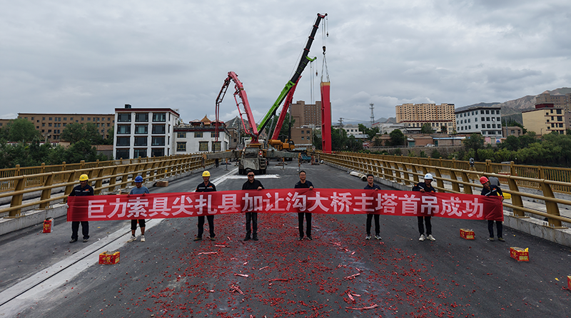 6月20日,加讓溝大橋主塔首吊作業(yè)取得圓滿成功,巨力索具股份有限公司承建了該項(xiàng)目的所有上部懸索結(jié)構(gòu),包括基座及主塔鋼結(jié)構(gòu),索鞍和索夾鋼結(jié)構(gòu),懸索橋主纜,吊桿用鋼拉桿及錨固鋼拉桿。