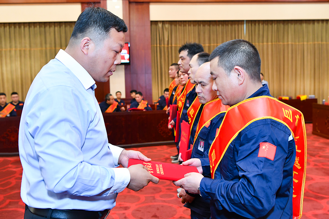 △ 鋼絲繩廠長(zhǎng)楊彪為獲獎(jiǎng)選手頒獎(jiǎng)