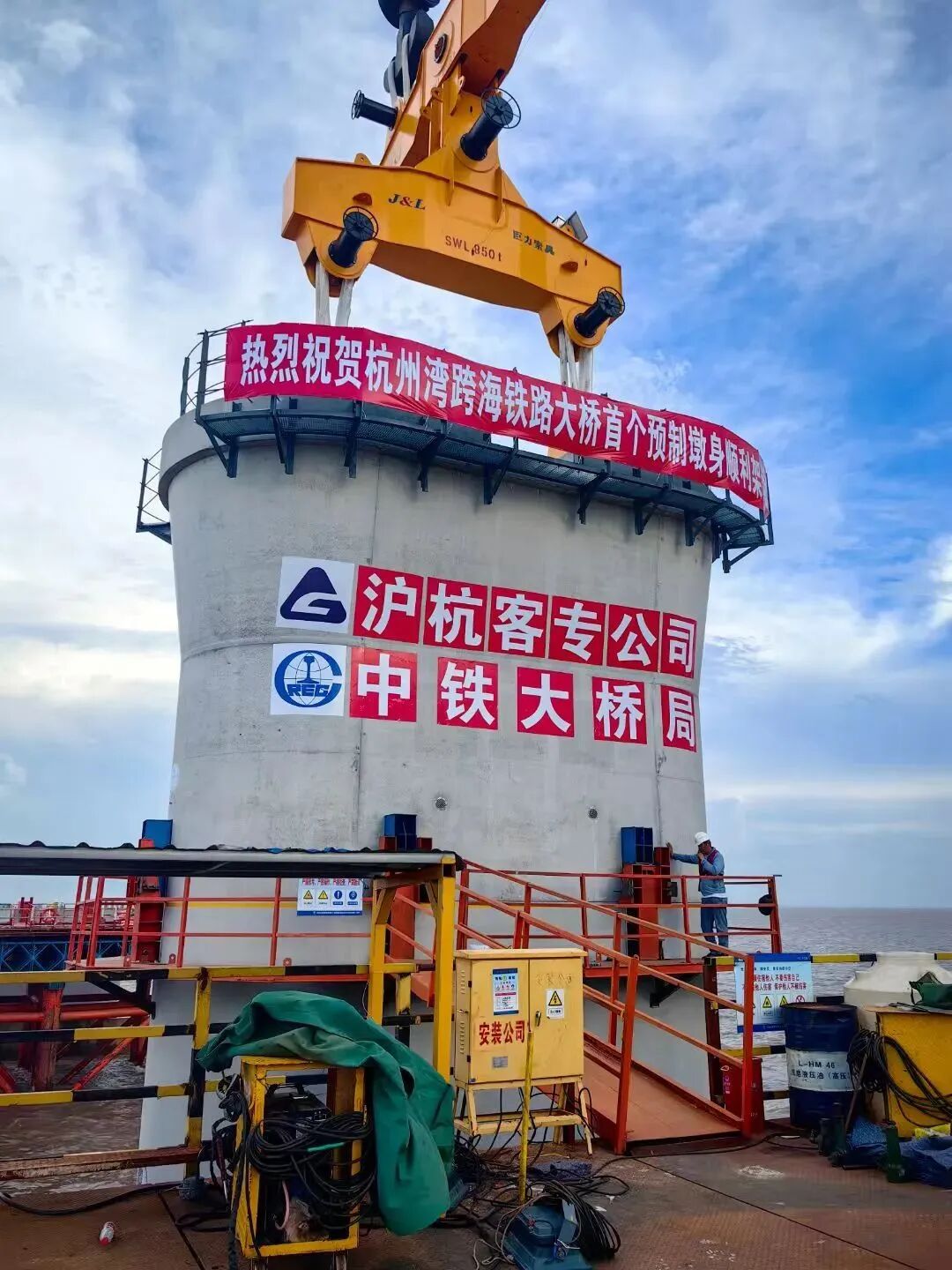 世界首次!巨力索具助力杭州灣跨海鐵路橋首座預制墩身成功架設