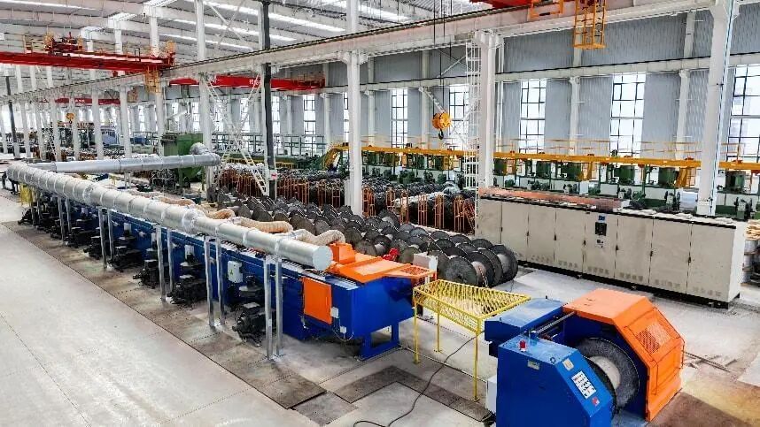絞線穩(wěn)定化生產(chǎn)線:2條絞線穩(wěn)定化生產(chǎn)線,通過(guò)穩(wěn)定化處理,在鋼絲表面形成一層致密的氧化膜,進(jìn)一步增強(qiáng)其防銹能力。