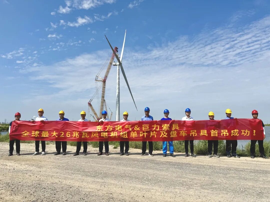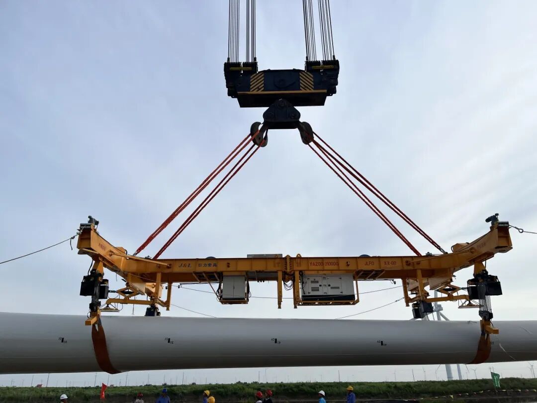 8月29日,由巨力索具股份有限公司為東方電氣風(fēng)電股份有限公司專項(xiàng)研制的26MW海上風(fēng)電機(jī)組用大噸位單葉片吊具及大扭矩盤車系統(tǒng),已于山東東營(yíng)風(fēng)電裝備測(cè)試認(rèn)證創(chuàng)新基地成功完成吊裝作業(yè)。這是目前國(guó)內(nèi)外最大兆瓦海上風(fēng)電機(jī)組葉片吊裝的優(yōu)異解決方案,創(chuàng)新型解決了最大葉片的吊裝難題。