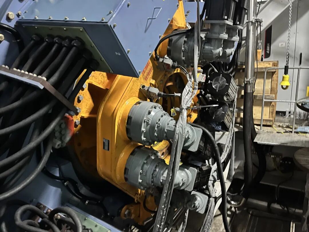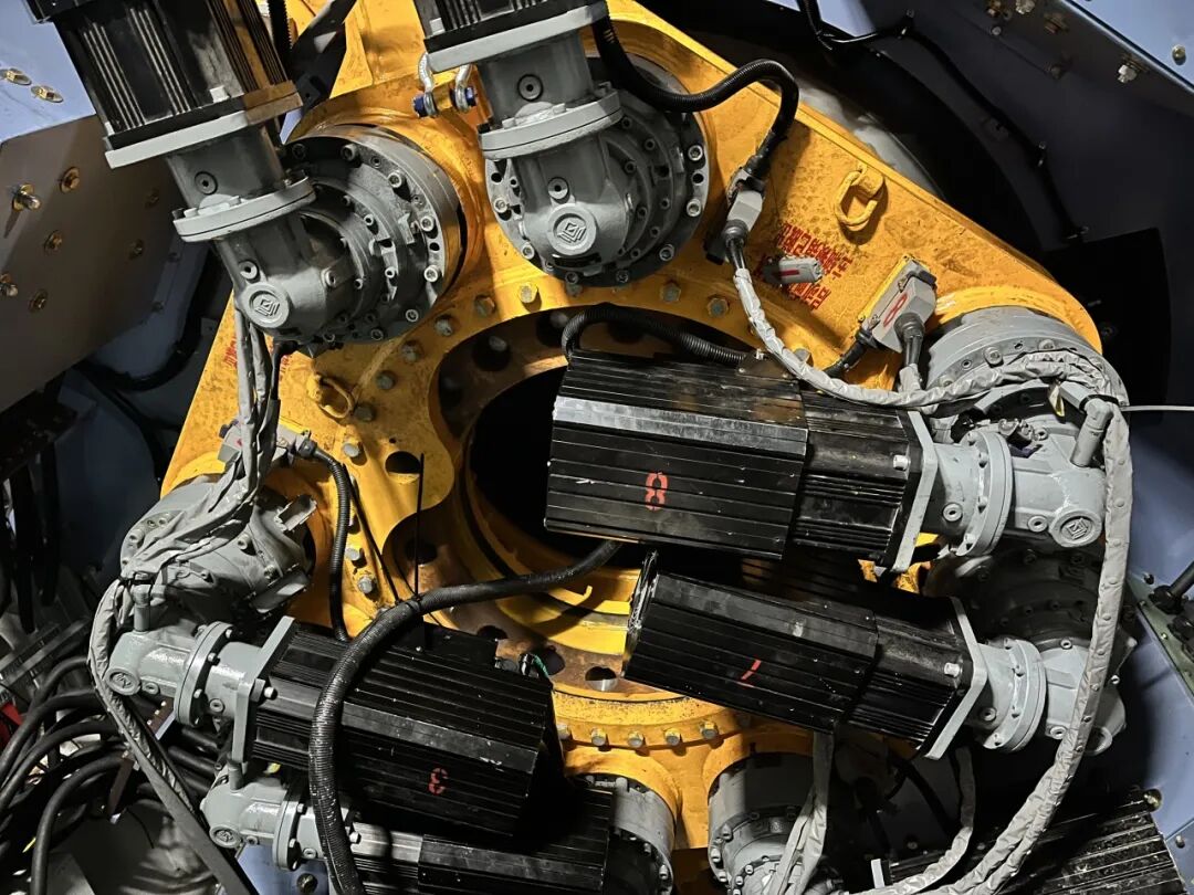 單葉片吊裝配套的盤車工裝采用創(chuàng)造性的8個(gè)電機(jī)驅(qū)動(dòng),優(yōu)秀的控制程序,均衡了驅(qū)動(dòng)的受力。機(jī)載控制面板和手持平板電腦均可查看和控制盤車使用過程。剎車裝置采用電機(jī)抱閘剎車和機(jī)械剎車雙重保障。