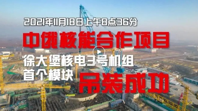 11月18日,徐大堡核電3號機組堆芯豎井模塊成功吊裝就位,標志著中俄核能合作徐大堡核電項目的首吊任務圓滿成功。